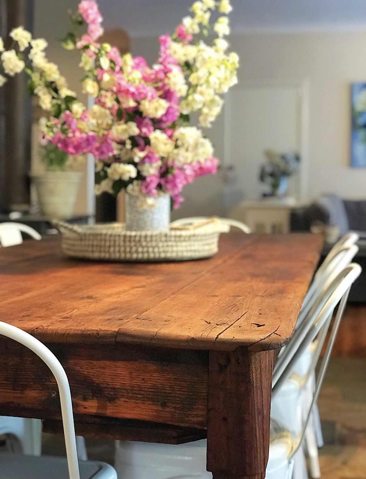 When a neighbour of ours was having a clean out of his old woolshed and put the word out he was selling some tables my ears pricked up. I’ve been after a table to replace our rickety old kitchen table for years, but I wanted a large ( 8-10 seater) old, rustic, type. Well this old girl ticked all the boxes,
